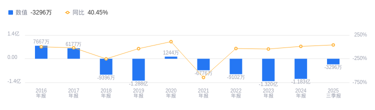 偿债能力方面,2025年三季度*ST亚振资产负债率为76.52%,去年同期为47.94%,高于行业平均45.64%。从盈利能力看,当期毛利率为23.79%,去年同期为35.87%,低于行业平均31.44%。