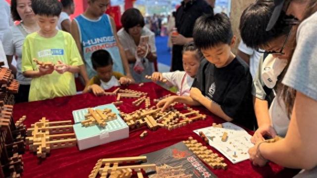 第七届山西文化产业博览交易会上,游客体验榫卯积木拼搭。(资料图)新华网 王梦佳 摄第七届山西文化产业博览交易会上,游客体验榫卯积木拼搭。(资料图)新华网 王梦佳 摄