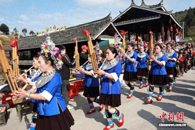 11月1日,在广西三江侗族自治县林溪镇高秀村,2025年第九届三江高秀红薯文化活动暨桂湘黔侗乡薯王争霸赛吸引游客参与体验。活动中,当地民众以拦路迎宾、民俗巡游、文艺表演、薯王评比、农特产品展销、红薯宴等丰富节目,倾情展现侗乡多彩风情。图为民俗巡游现场。龚普康 摄