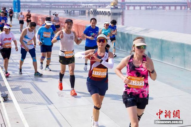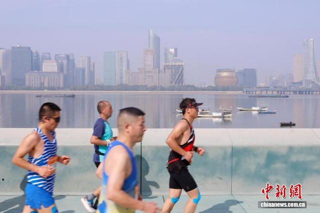 11月2日,2025杭州马拉松鸣枪开跑,3.2万人分别参加全程马拉松、半程马拉松项目。图为参赛选手在比赛中途经钱塘江。中新社记者 肖健 摄