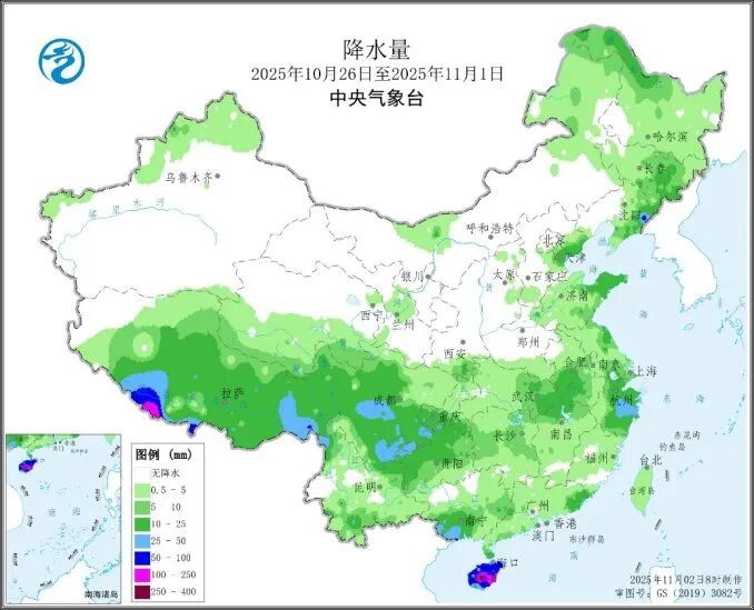 西南地区大部、江南中西部及华南西部等地多阴雨天气,累计降水量有25毫米至60毫米,其中四川大部、重庆南部、云南、贵州及湖南西部等地降水日数有4至7天,降水较强时段为11月3日至4日和9日前后,四川南部、云南西部和北部等地土壤过湿将持续或加重,油菜播栽及培育壮苗、冬小麦播种略受影响,也不利于秋收作物晾晒储存及晚稻成熟收晒。