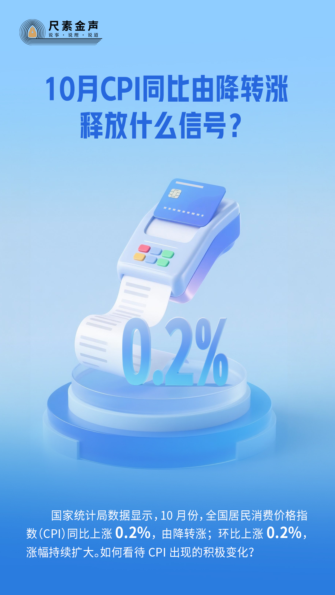 国家统计局数据显示,10月份,全国居民消费价格指数(CPI)同比上涨0.2%,由降转涨;环比上涨0.2%,涨幅持续扩大。如何看待CPI出现的积极变化?