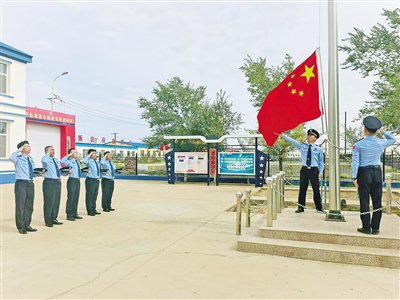 金秋的北疆,天高云淡。9月29日清晨,当第一缕阳光洒向巴彦淖尔边境的戈壁草原,熟悉的国歌声再次回荡在这片土地上。这一天,巴彦淖尔边境管理支队的11个边境派出所同步举行“同升一面旗”活动。民警辅警、共建单位代表和牧民们并肩而立,注视着五星红旗在边境管理区缓缓升起。这一刻,国旗在晨风中飘扬,守边人的身影在晨光中定格。在这片占全市总面积51%的广袤边境区,红旗与戎装交织的画卷,映衬着他们日复一日、平凡而坚定的守护。