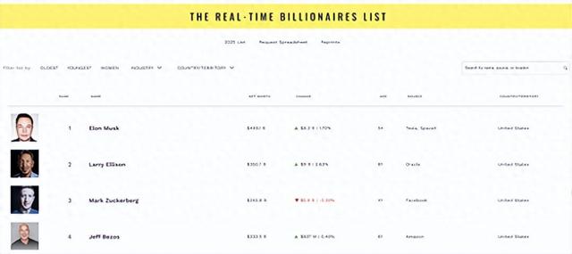 根据福布斯富豪榜,截至美国东部时间1日下午4:15,马斯克的净资产达到了5001亿美元,甲骨文公司创始人拉里·埃里森名列榜单第二。