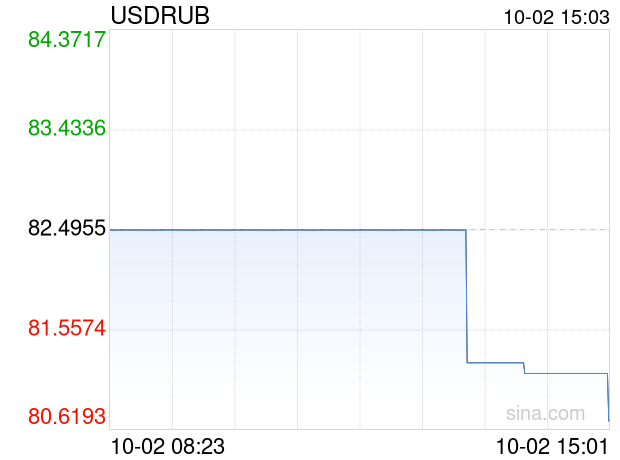 新浪外汇消息2025年10月02日,截至15时02分,外汇市场上美元兑俄罗斯汇率跌破1美元兑换80.7000俄罗斯卢布。跌幅为-2.1765%