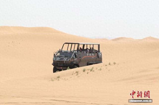 10月2日,游客在宁夏中卫市沙坡头景区内体验沙漠冲浪。当天是国庆假期第二天,众多游客在宁夏中卫市沙坡头景区体验沙漠骆驼、大漠飞天、沙漠冲浪等项目,乐享国庆假期。中新社记者 于晶 摄