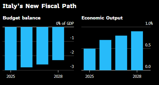 意大利内阁批准了一份预算,今年的赤字仅占国内生产总值的3%,让总理梅洛尼的政府能够腾出更多资金用于减税和国防。