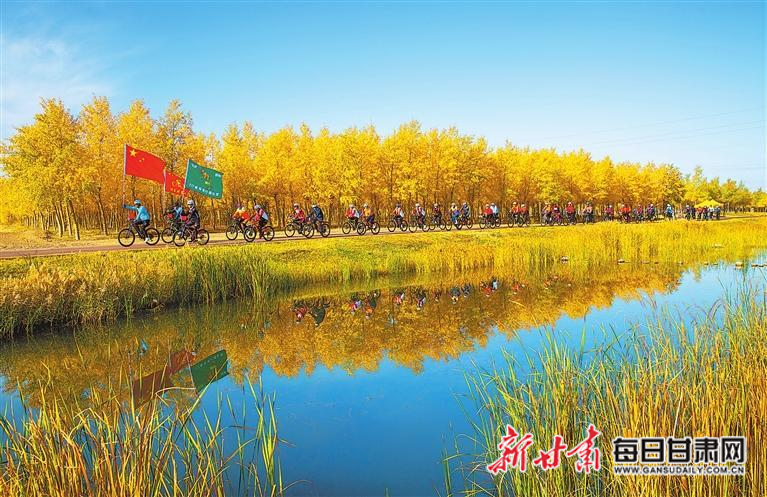 国庆中秋假期,甘州区黑河林场胡杨林迎来众多骑行爱好者。新甘肃·甘肃日报通讯员 杨永伟