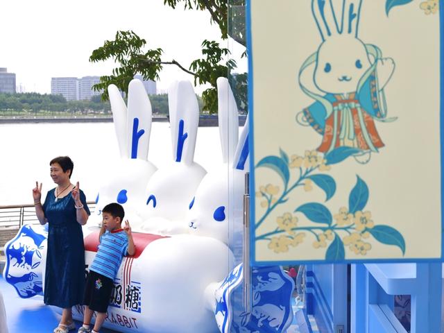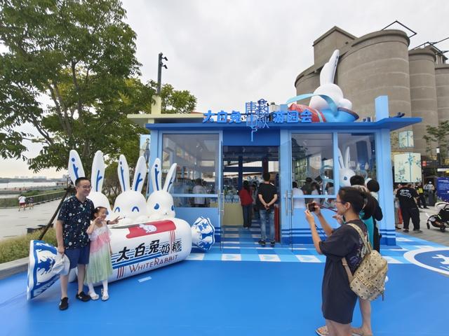 活动期间,奶萌的“大白兔”欢跃在西岸各处,与游人互动。游园会上还有国潮非遗市集、大白兔快闪店、中秋主题演出、无人机表演等活动,给市民游客带来丰富的节日体验。