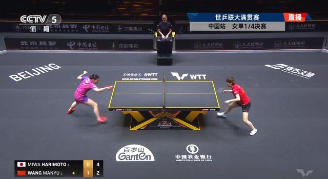 WTT中国大满贯女单1/4决赛,王曼昱4-0战胜张本美和,晋级女单四强,比分:11-3、12-10、11-6、11-4。这样女单四强出炉,孙颖莎、王曼昱、陈幸同三人晋级,半决赛王曼昱对阵申裕斌。