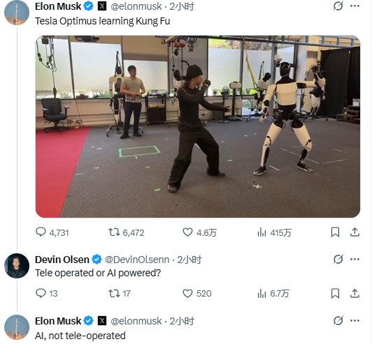 格隆汇10月4日|马斯克在X平台上发布特斯拉擎天柱学习功夫的视频。一位网友问:“远程操作还是AI驱动?”马斯克回应称:“AI,并非远程操作。”