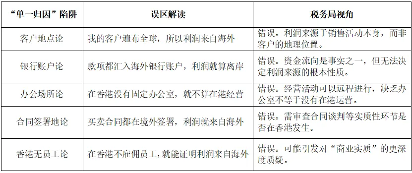 除此之外,许多企业还容易陷入“单一因素决定论”的误区,即错误地认为只要满足某个特定条件,就能自动获得离岸地位。