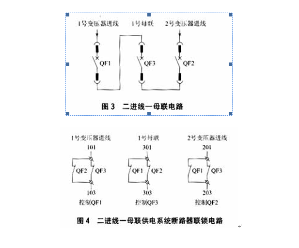 a)三进线二母联供电系统采用三进线二母联供电方式;一般供电系统是采用二进线一母联供电方式,其系统图见图3,联锁电路见图4。