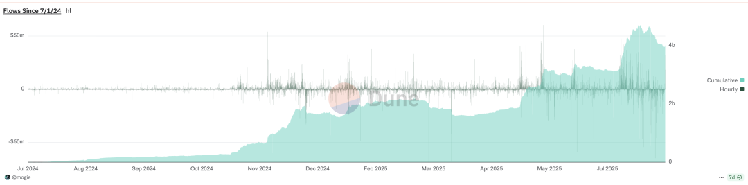 由于交易者/DeFi 深度参与者收到了代币,许多人选择质押(以降低交易费用)并存入 HLP 金库(https://hyperliquid.gitbook.io/hyperliquid-docs/hypercore/vaults/protocol-vaults),从而提升了交易体验,启动了一个强劲的飞轮效应。
