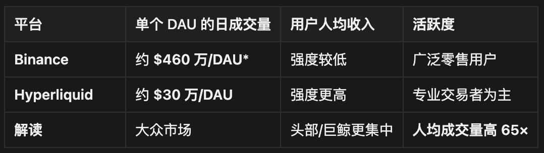 · 66.5 万交易者每月产生人均 30 万美元交易量(交易密集度是币安零售用户的 65 倍);