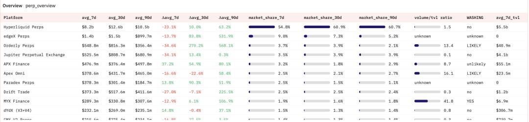 · 占去中心化永续合约总交易量的 70%,日交易量占比达币安的 9.9%;