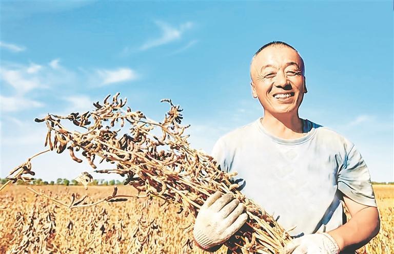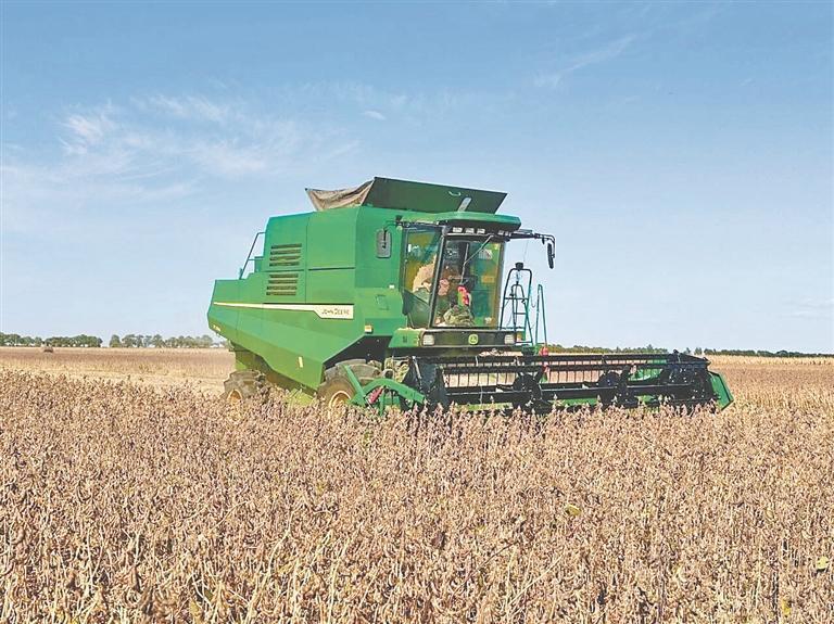 国庆假日,丰收时节。秋风拂过宝清县青原镇的田野,连片的大豆田泛起金黄浪涌,饱满的豆荚压弯豆秆,收割机轰鸣作业,农户们忙着分拣、装袋,丰收的喜悦在田间地头蔓延。