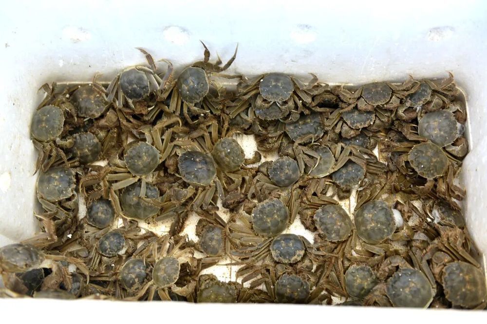 据介绍,辽宁毛蟹肉质鲜嫩细腻,喜低温环境,夏季生长较慢,至7月仅30克-40克,进入秋季后迅速增重至150克。判断螃蟹是否成熟,可观察其腿部:腿长且硬实即表示已长成。