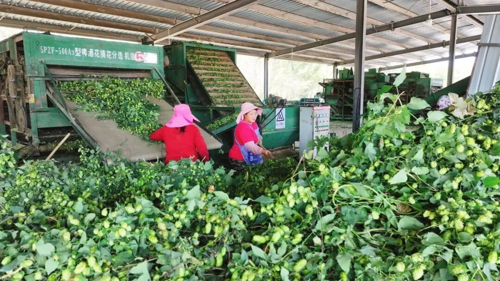 工人正在分拣新鲜啤酒花 (邢文亮 摄)