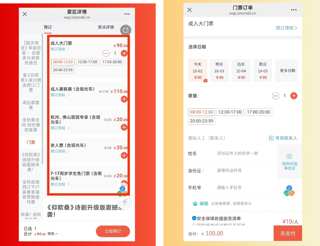 游客需提前通过线上实名制分时预约购票,分时预约时段分为四个时段:8:00-12:00,12:00-17:00、17:00-20:00、20:00-23:59,购票时需一人一证;建议游客提前一天预约购买景区门票+观光车票,预约购票成功后请在预约时间段内刷身份证入园(温馨提示:在预约时间段时请考虑交通、排队等因素)。如购票异常请联系客服电话:400-153-8866。