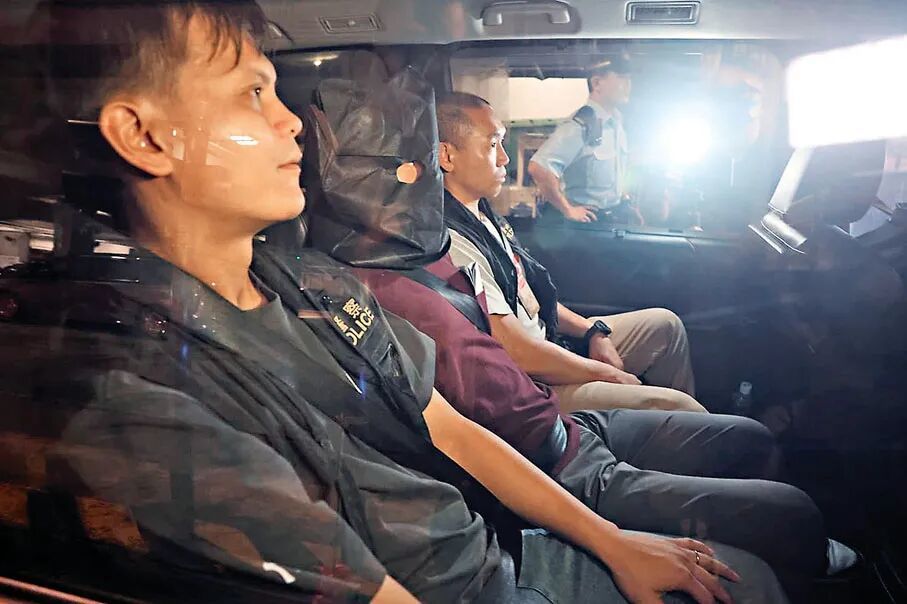 警方将疑犯由红磡警署押送往西九龙总区警察总部扣查。