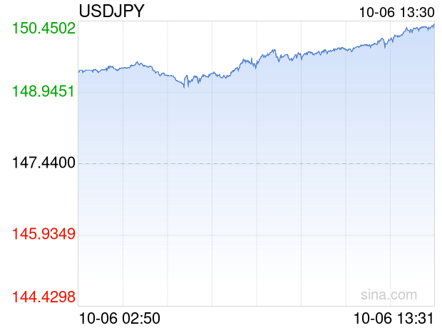 新浪外汇消息2025年10月06日,截至13时30分,外汇市场上汇率突破1美元兑换150.4000日元。涨幅为2.0076%