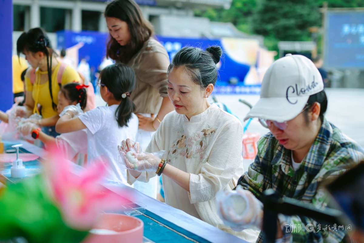 “一家四口过来的,氛围很好!”贵阳市民黄艳专程带着孩子来沉浸式体验传统佳节文化。