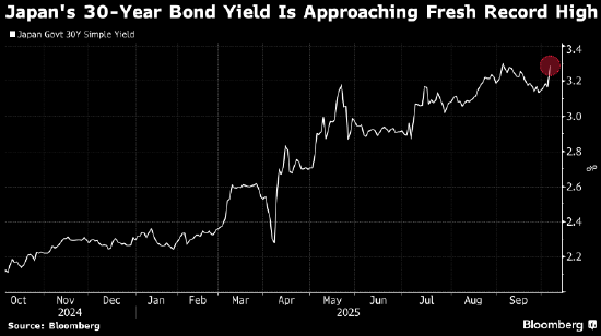 交易员们严阵以待周二的日本30年期国债招标,此前主张刺激政策的保守派高市早苗在执政党党首竞选中意外获胜,震动债市。