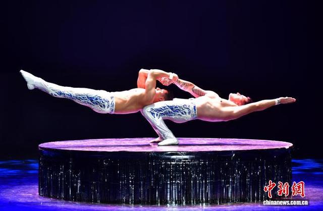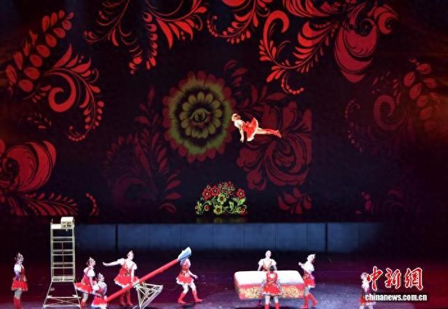 10月6日晚,第二十届中国吴桥国际杂技艺术节“国际杂技盛典”在河北石家庄精彩上演。全球顶尖杂技力量同台献艺,为观众带来一场无与伦比的视觉盛宴。图为俄罗斯女子大跳板表演。中新社记者 翟羽佳摄