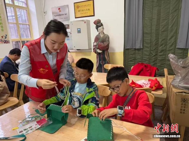 晋祠博物馆工作人员在教小朋友做手工。晋祠博物馆 提供