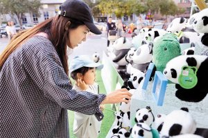 在香坊万达广场的熊猫主题展区内,憨态可掬的熊猫玩偶、沉浸式互动场景趣味十足,成为亲子家庭的打卡首选。展区不仅让市民近距离感受“国宝”魅力,更实现了熊猫IP与商业场景的“破圈”融合。节日期间,商场每日举办2场不同主题亲子活动,更有憨态可掬的熊猫玩偶互动巡游,参与互动的小朋友可以免费领取熊猫玩具等礼品。