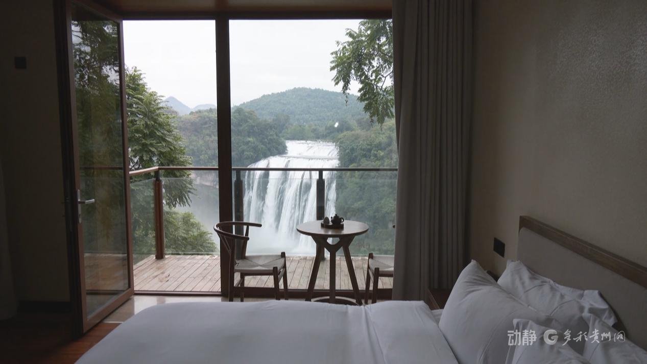 这家离大瀑布不到300米的酒店里,是一个观赏黄果树瀑布的绝佳位置,抬头可见瀑布奔涌而下,水雾混着负氧离子扑面而来,满目青绿与飞瀑相映,格外养眼。