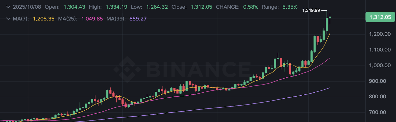 ChainOpera 的另一个关键在于其选择了 BNB Smart Chain(BSC) 作为底层网络。正值 BNB 价格从 5 月的 500 美元 飙升至当前 1,300 美元,整个 BSC 生态活跃度空前。