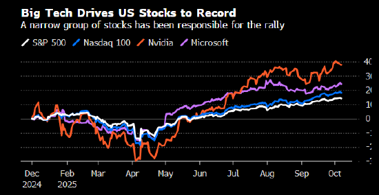 随着美国股市的创纪录上涨推高估值,围绕AI泡沫的担忧升温。科技股权重较高的100指数今年上涨18%,预期市盈率为28倍,而其10年平均水平为23倍。