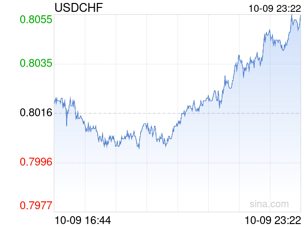 10月09日 美元兑瑞士法郎突破0.8057 折算100瑞士法郎汇率兑885.1124人民币