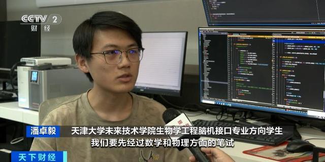 天津大学未来技术学院生物学工程脑机接口专业方向学生 潘卓毅:二次选拔的时候,我们要先经过数学和物理方面的笔试。我从小对大脑如何产生意识这个问题比较好奇,我还倾向于去做一些不仅是技术上的突破,更多的是把这种技术能够真正向产业转化。