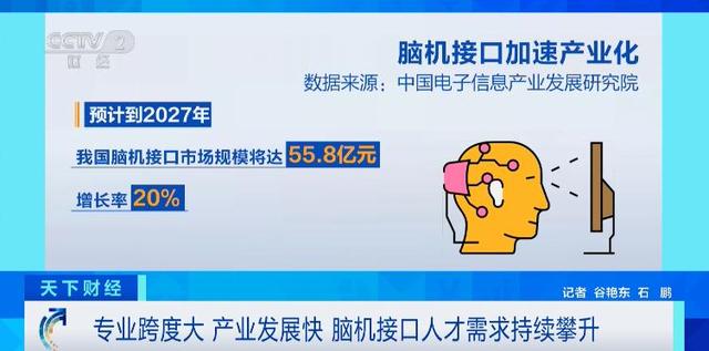 脑机接口作为国家重点发展的未来产业,如今,正加速从实验室向产业化迈进。数据显示,预计到2027年,我国脑机接口市场规模将达到55.8亿元,增长率为20%。其技术链条覆盖生物医学、神经科学、计算机、电子工程等多个学科,因此也带动了多专业背景毕业生就业,专业人才缺口巨大。