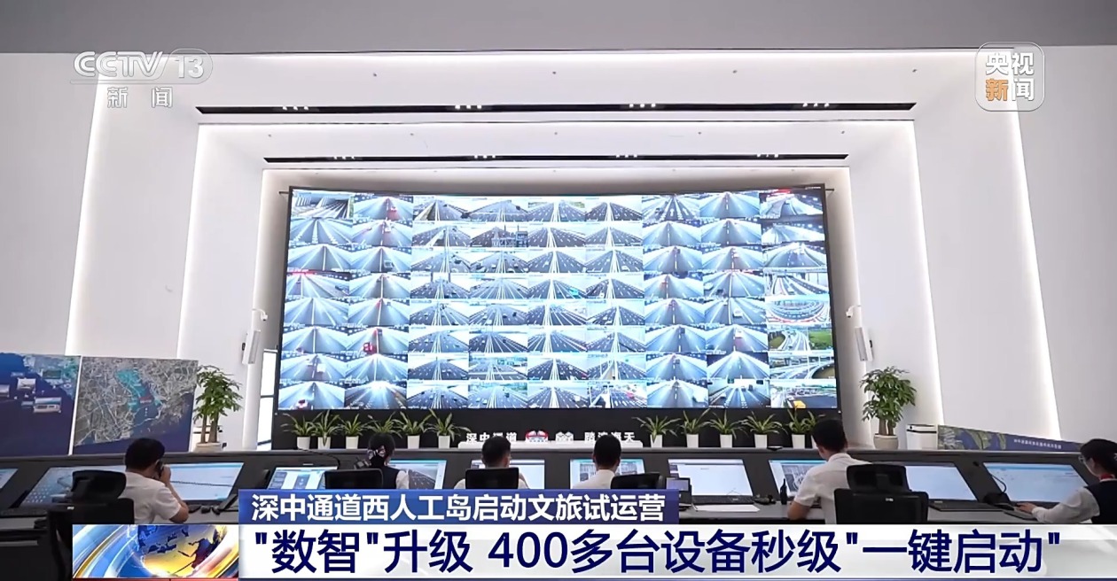 目前深中通道日均车流量8.85万车次,一系列数智化升级时刻保障着安全顺畅通行。全线800多路高清摄像、无人机等构成深中通道智慧路网的“火眼金睛”,异常情况时系统会瞬间自动报警。在6.8公里海底隧道,深中通道的“智慧大脑”预先设置了700多种应急预案,一旦发生事故,工作人员只需输入事故位置,系统就会自动匹配最佳方案,喷淋排烟等400多台设备一键启动秒级响应。现在,通过“一通道六路”智慧交通管控技术,深中通道还与周边相接的6条高速实现数据相连,引导车辆行驶最优线路。