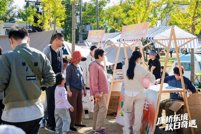 围绕主舞台的“秋日回音·帐篷派对”板块,成为展现康桥社区活力的缩影。通过“康桥文化中心”公众号预约的百余组家庭,从百林苑、东康名苑等周边社区步行而来,带着露营装备入驻专属帐篷区。周边设置的打卡点前人头攒动,摄影师穿梭其间,为每个家庭定格“帐篷全家福”,镜头里既有三代同堂的温馨,也有新邻居相识的笑容。舞台表演间隙,打击乐互动摊位前,社区民乐团的老师们正手把手教孩子们打手碟,不同年龄层的参与者在节奏互动中拉近距离,让“远亲不如近邻”的温暖在康桥生活圈内悄然传递。